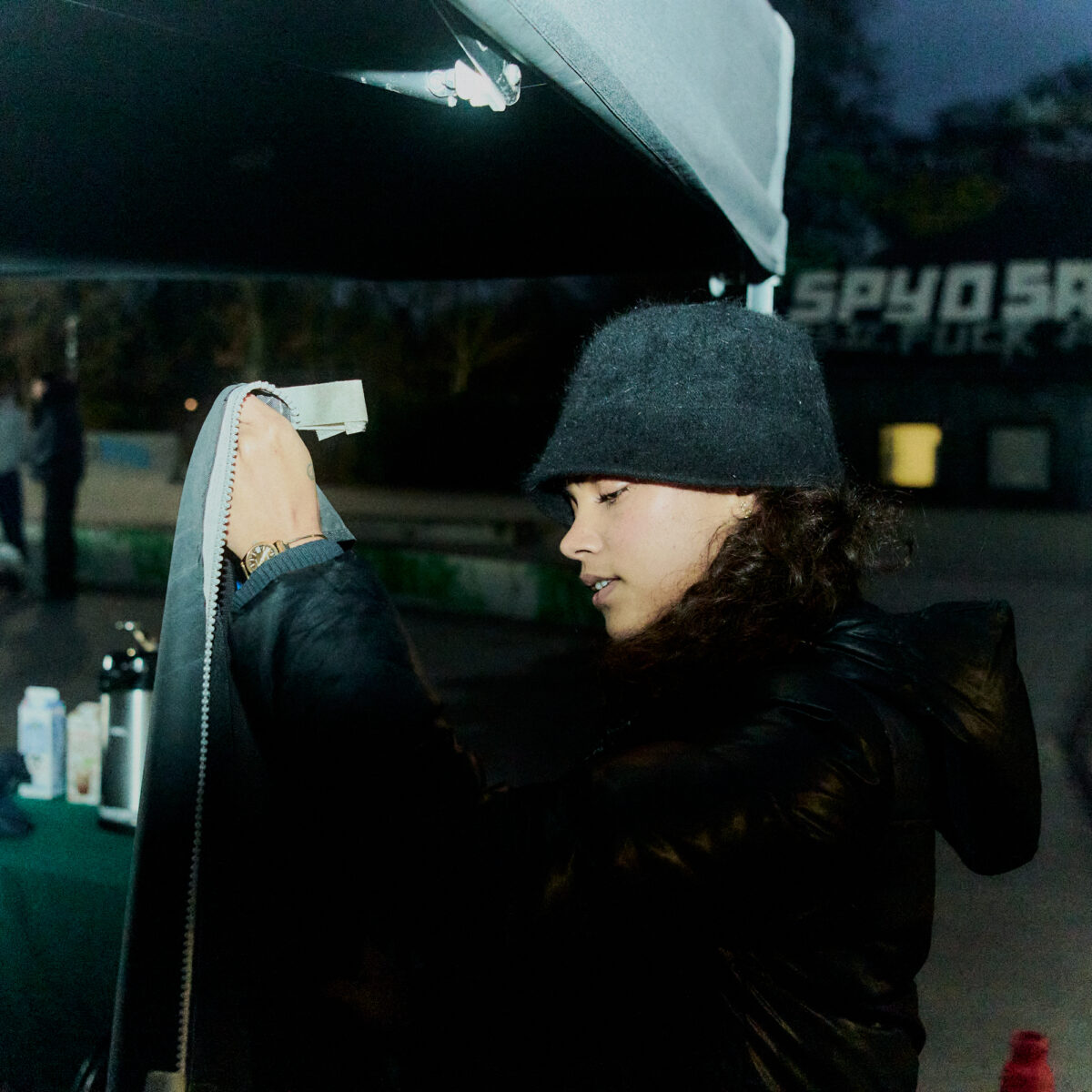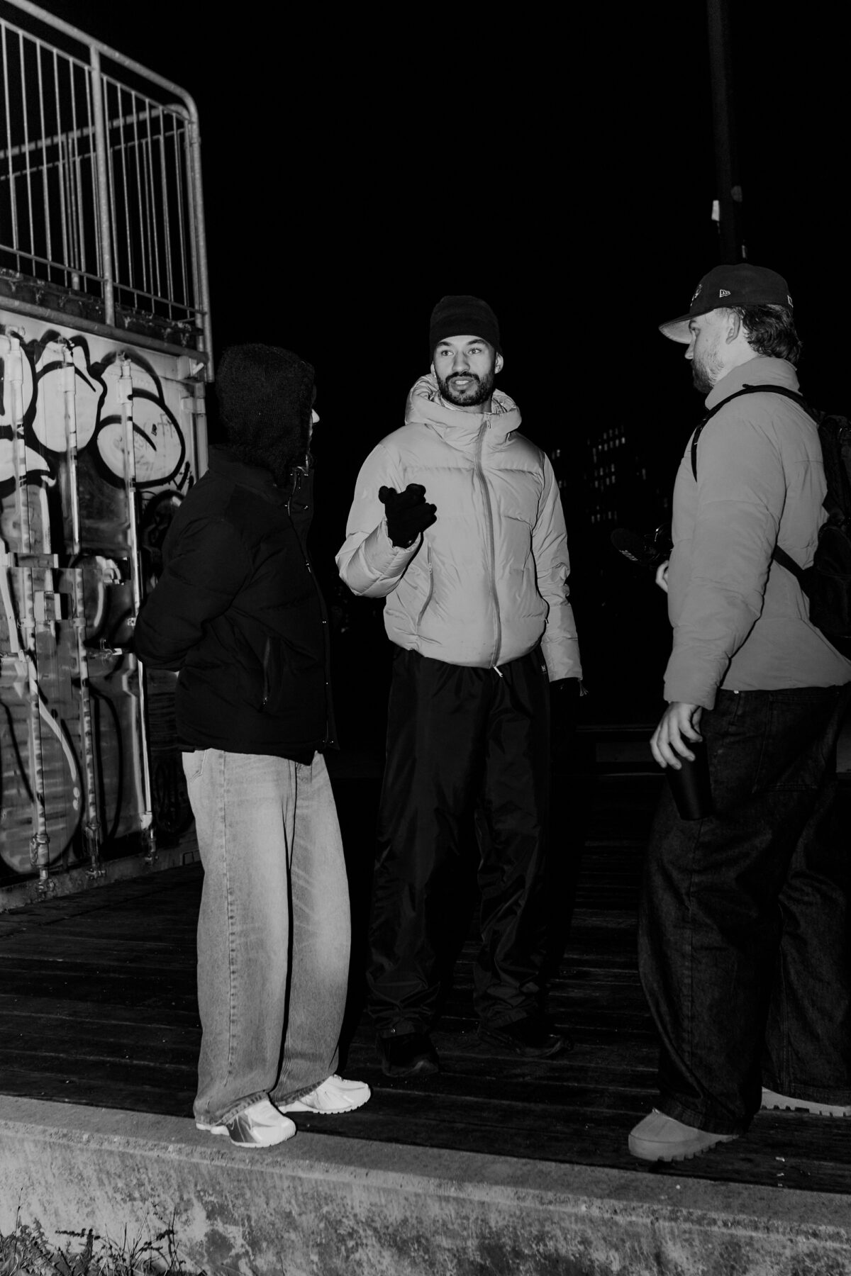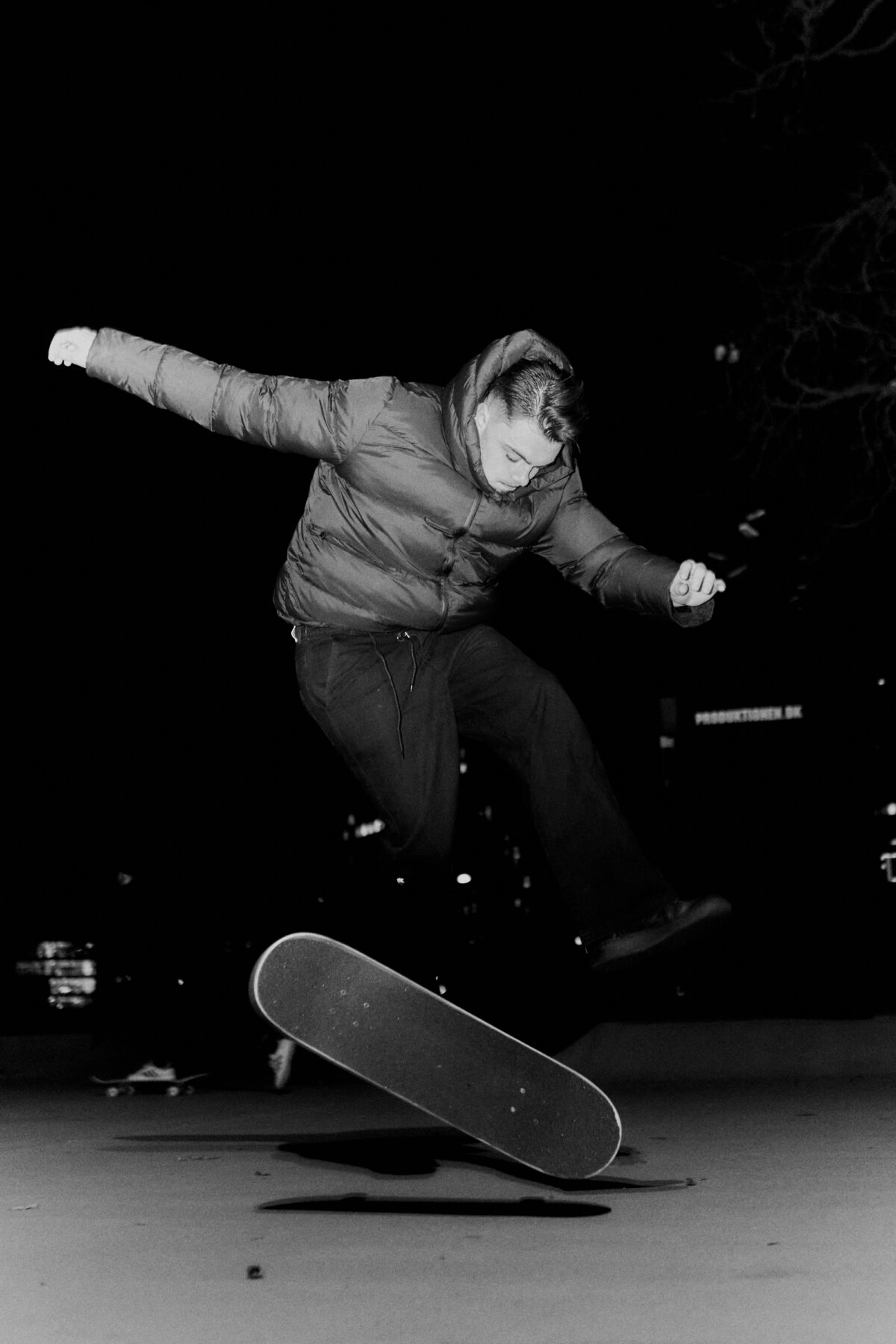 Hang Time was supposed to be a warm and happy daylight film, but logistics and VFX made us decide to record at night. Next thing you know, i’m in the studio with the composer, making a dark, thriller inspired track as well as adding green graphics and thunder in VFX.